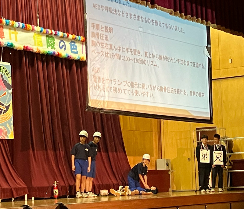 10/18(金)には、「輝け 信陵の色」をテーマに、「蒼陵祭(そうりょうさい)」が開催されました。午前中は開祭式に始まり、各学年の総合学習(1年:職業人に聞く会・2年:職場体験・3年:修学旅行)の発表や合唱部・吹奏楽部の演奏が行われました。