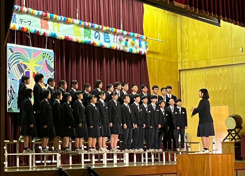 午後は、合唱コンクールと閉祭式が行われ、各学級のすばらしい歌声が体育館に響き渡りました。各クラスの合唱練習をはじめ、実行委員を中心に、地道に準備を進めてきたこともあり、全校生で楽しめる大成功の文化祭となりました。