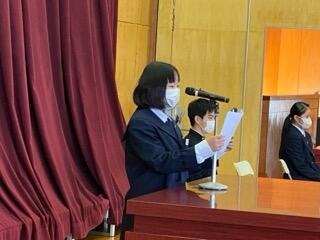 3年生は、来週の卒業式前に信陵中の同窓会入会式に臨んでいます。