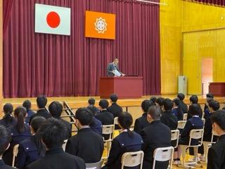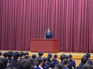 校長先生の式辞では、まず初めに石川での震災に対して被害に遭われた方々へ想いが述べられたあと,改めて震災への準備や日常のありがたさについて話されました。