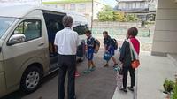 中体連県大会3日目最終日早朝、水泳部が競技場所の郡山へ向けて出発しました。