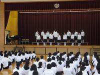 8月22日(木)、本日から第2学期が始まりました。始業式の後、各学年代表による生徒意見発表、29日の英語弁論大会に出場する生徒2名の発表があり、そのあと、合唱部が29日にいわきで開かれる県大会へ向けて歌声を披露しました。