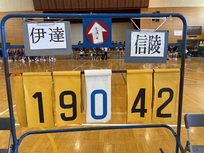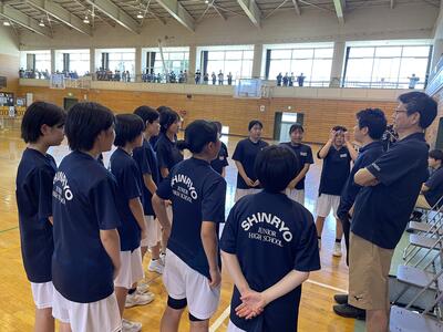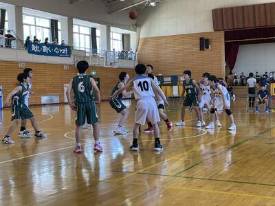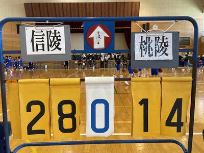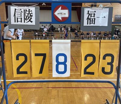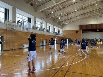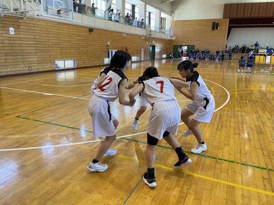 バスケットボール会場では、本校生徒が熱戦を繰り広げております。男女とも精いっぱいプレーしています。