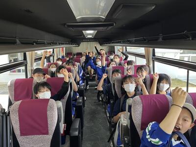 今日は、支部中体連最終日です。男女バスケットボール部が、元気に学校を出発しました。支部代表をかけて決戦です。