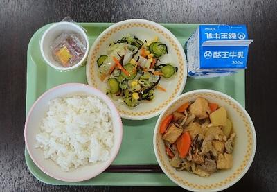5月16日(木)の給食は、ご飯、納豆、ひじきサラダ、じゃがいものうま煮、牛乳でした。
