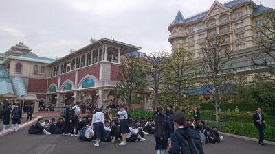 都内フィールドワークを終了し、夢と魔法の国入場待ちです。