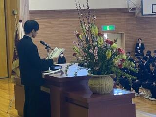 午後からは、入学式が行われました。2、3年生が入り、保護者も人数制限のない式は、本当に4年ぶりのことで、とても喜ばしいことです。今年度から新しくなった制服姿の新入生は、とても誇らしく見えました。これからの中学校生活を学習や運動、友達との交流など楽しんでほしいと思います。保護者の皆様誠におめでとうございます。
