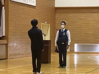 今日は,警察署員の方をお招きして、「事故防止教室」が行われました。この4月から全年齢に対して自転車に乗る際はヘルメット着用が努力義務化されました。自分のかけがえのない命を守るためにとても大切なことです。