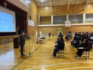 2023年1月18日 10時41分昨年の元オリンピック選手に続いて、今日は福島市出身の画家「齋 正機」先生をお招きして「夢がかなうチカラ」というタイトルでお話しをお聞きしました。