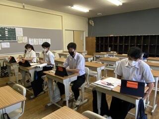 当初各校が集まっての会の予定でしたが,感染拡大防止のためリモートで行われました。代表の3名が取り組みなど発表することができました。