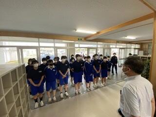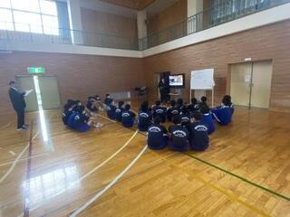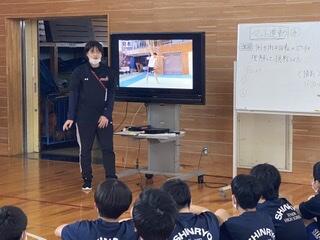 先月から信陵中の卒業生が教育実習に来ています。今日は,体育の授業を行なっています。ICTを活用して、具体的な動きの姿勢について映像で提示していました。