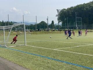 2022年6月21日 09時12分サッカー会場では,信陵中イレブンが活躍しています。先制点をとって試合をリードしています。