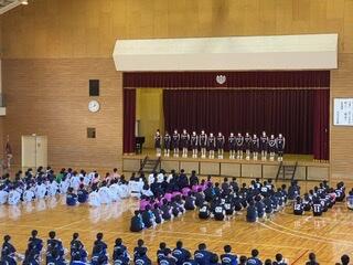 来週から行われる中体連に向けて全校生で「激励会」を行いました。各部とも部長を中心に大会に向けての抱負やメンバーの紹介を堂々と発表しました。その後、ずっと行われてこなかった全校生での応援をしました。来週からの活躍を期待しています。