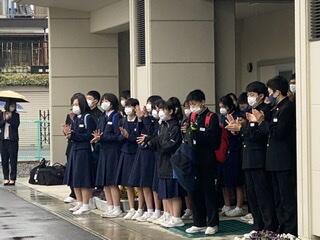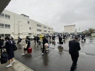 三泊二日の修学旅行は、全ての行程を終え、今学校に到着しました。少し疲れた様子ですが,心なしか満足げな表情が見られて本当に良かったです。みんなと過ごしたこの経験を今後の生活に活かしてほしいです。