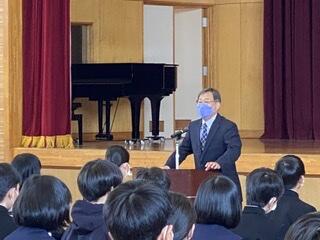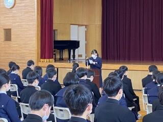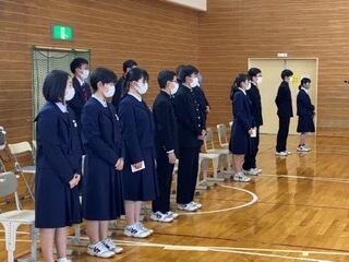 先週行われました3年生の修学旅行の解団式が行われています。実行委員長から、周りの支えがあってこの旅行ができたことへの感謝や得たたくさんのことをこれからの生活に活かすことなど話されました。