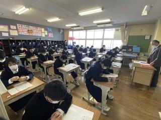 3年生は、全国学力・学習状況調査調査を行なっています。今年度は,理科も加わり午前中の日程です。この調査をもとに、今後の指導に役立てるものです。みんな真剣に問題を解いていました。