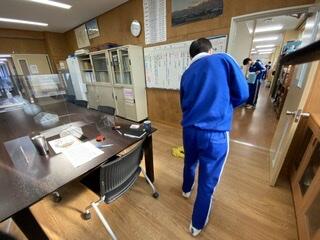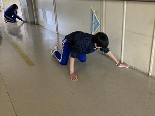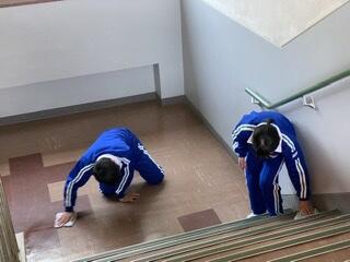 3年生が修学旅行から戻ってきて、今年度はじめての全校生で行う清掃でした。床掃除を膝をつけて行なっている姿が印象的です。みんなで、きれいな信陵中を心がけたいものです。