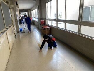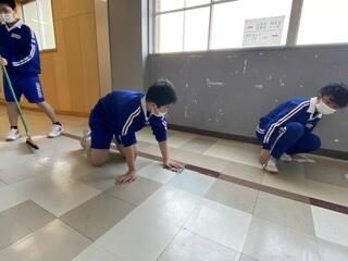 2022年4月19日 15時54分3年生が修学旅行から戻ってきて、今年度はじめての全校生で行う清掃でした。床掃除を膝をつけて行なっている姿が印象的です。みんなで、きれいな信陵中を心がけたいものです。
