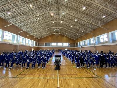 いよいよ明日からの修学旅行に向けて、修学旅行の結団式が行われました。これまで感染症対策をしっかり行い、明日を迎えることができました。全力で活動すること、全力で楽しむことを確認しました。
