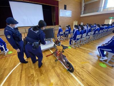 交通安全教室をおこないました。福島北警察署笹谷交番所長さんたちを講師にお迎えして、いろいろ教えていただきました。最後には,VR自転車運転で実際の危険な場面について貴重な体験をさせていただきました。今後とも交通マナーを守って歩行や自転車の運転をしていきます。