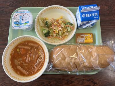 チリコンカンとは、メキシコ料理に由来するアメリカの郷土料理の1つとして、古くから親しまれているそうです。にんじんや玉ねぎ、じゃがいもなどの野菜がたっぷり入っており、栄養満点ですね。トマトの酸味がさっぱりしていて美味しかったです。