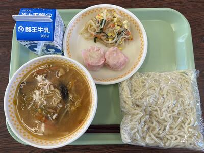 今日は、キムチのかけ汁で食べるめんでした。あっさりとしたスープが食欲をそそり、美味しくいただきました。
