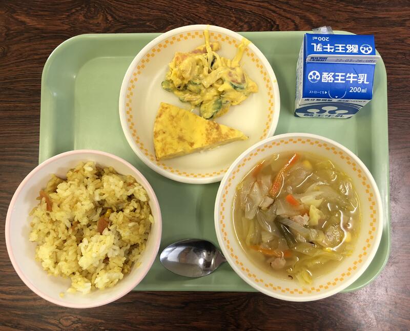 今年度最後の給食は、春の訪れを強調するような黄色いビタミンカラーがまぶしいメニューでした。1年間の締めにふさわしい元気が湧いてくるなうな給食でした。