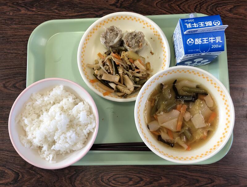 ごはん 牛乳 きのこしゅうまい