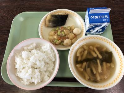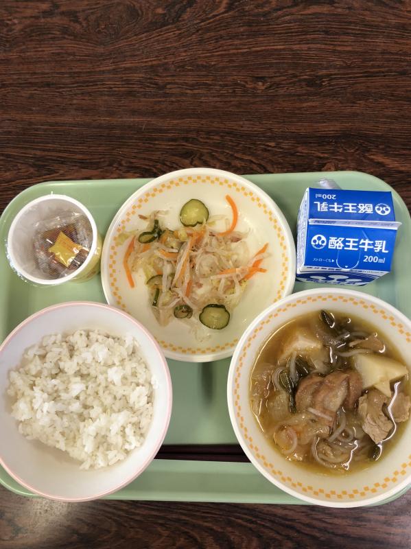 今日は、栄養価の高い麦ごはんでした。納豆をかけて更に栄養満点です。