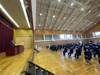 本日3年生は,同窓会入会式を行いました。同窓会長様から、心温まるお言葉をいただきました。特に「味方をたくさん増やすこと」についてわかりやすくお話ししていただきました。