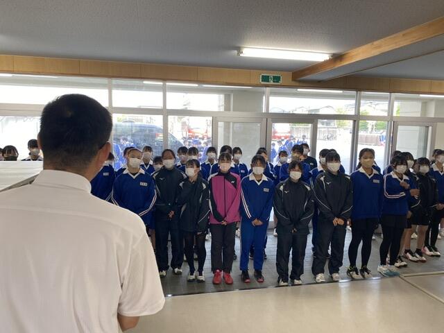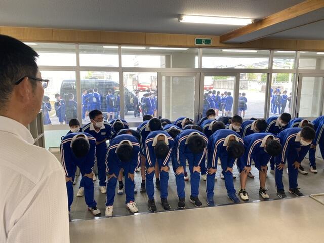 支部中体連1日目 出発 2023年6月6日 06時35分 早朝から,各部学校を出発しています。天気も良く気持ちのいいスタートです。ただ,気温、湿度共に上昇しそうなので熱中症に気をつけてベストを尽くしてほしいです。