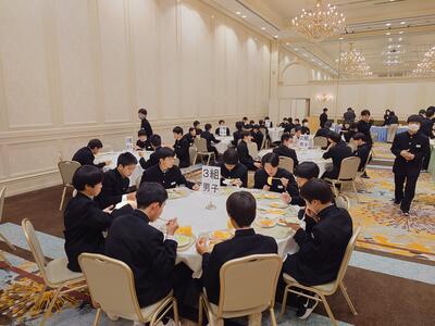 2日目朝食の様子です。このあと班別フィールドワークに出発となります。