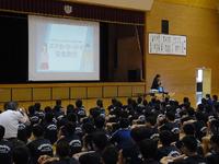 8月23日(金)5校時に、防犯教室を行いました。NTTドコモのスマホ・ケータイ安全教室インストラクターの永澤亜希子さんを講師に迎え、およそ1時間、動画なども交えながら、SNSや動画サイト、インターネットの利用で気をつけなければならないことや、情報漏えいの恐ろしさなどお話しいただきました。知らない間に問題が大きくなる恐れがあるインターネットについて多くのことを学びました。
