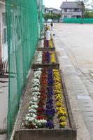 5月12日(火)、今日は1年と10組、13組の登校日でした。入学式以来わずか4日目の登校。まず、臨時休業中の課題を提出してもらいました。学級ではできるだけ机を離し、授業は1クラスを2教室に分けて実施します。学年集会でも、空間をつくって座ってもらいました。先生方の自己紹介からのスタートです。校庭のパンジーは事務の先生と技能主事さんの努力の結晶で、素晴らしくきれいに咲いています。