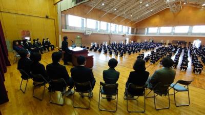 3月26日(金)晴天の日、令和2年度末人事異動に伴う教職員離任式を行いました。