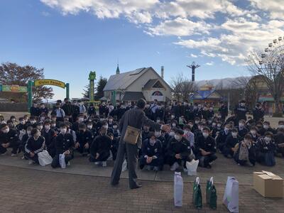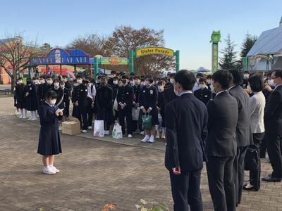 2021年11月11日 14時48分晩秋の爽やかな青空の下、修学旅行2日目の幕が降りる時が近づいてきました。