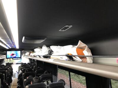 バスの棚にはおみやげの袋がたくさん並んでます。