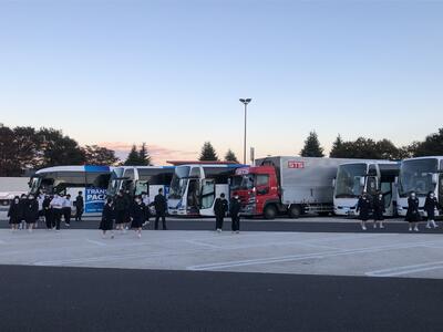 正門側の駐車場はバスが5台並んで駐車しますので、ご協力のほど、よろしくお願いします。