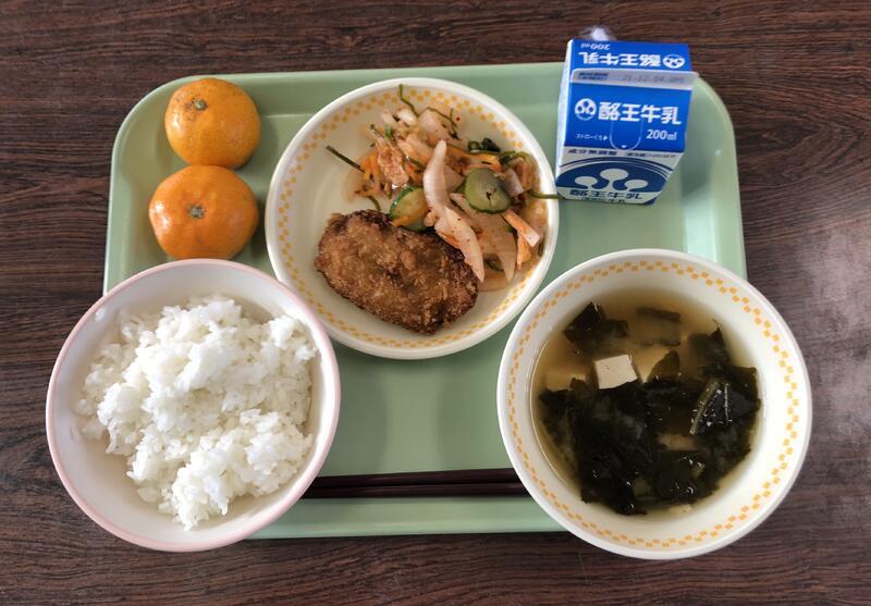 今日は、献立表には記載されていなかったみかんか、出ました。これは、熊本県から贈られたもので、東日本大震災後に、『福島県の人に少しでも元気を。』との温かい思いを込めて毎年贈られているとの事です。今年は、豪雨災害等で、熊本県でのみかんの収穫量は減少してしまっているにも関わらず、変わらず贈ってくださったみかん。温かい気持ちになりありがたくいただきました。