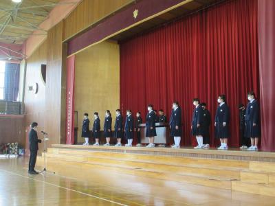 それぞれ出場種目ごとに選手が紹介され、校長先生や代表生徒から激励の言葉がありました。