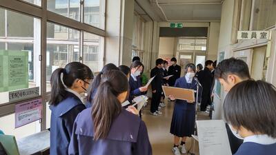 安全係からは、冬の期間の交通安全も含め、自転車の乗り方や歩行の仕方について全校生へ話しました。「命を守る」大切な内容ですので、ぜひ、ご家庭においてもお子様と話題を共有し確認ください。