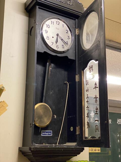 玄関の古時計のゼンマイを巻いて振り子を動かしました。今日から第3学期の始まりです。