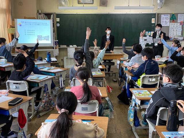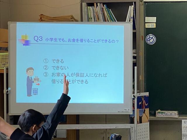 今日は5年生が、福島信用金庫の方を講師に迎えた学習をすることができました。