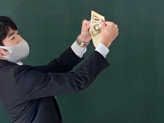 札束を数えることなど、ほとんどの児童が初体験。うまくできずとも見様見まねでチャレンジ・・・( ^ω^)