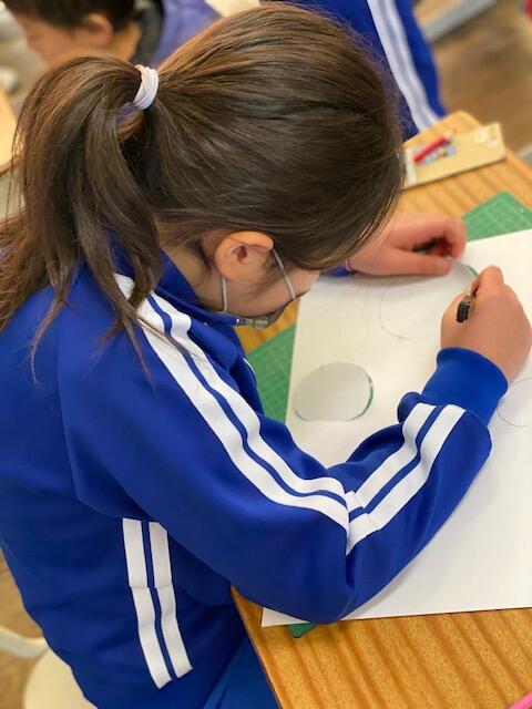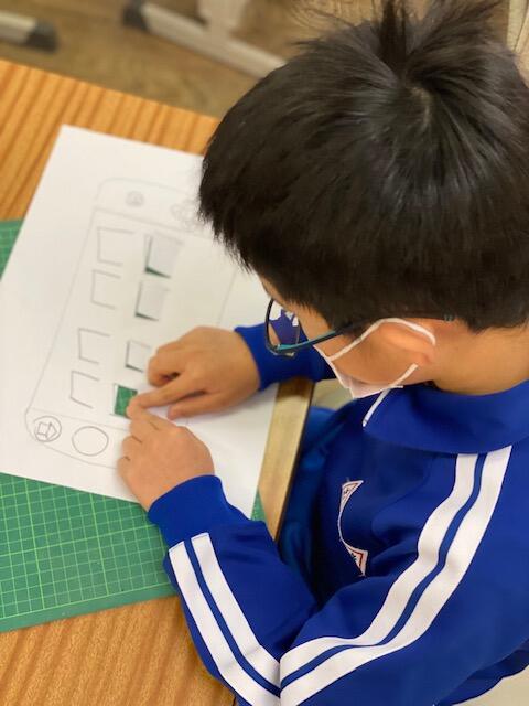 3年生は、ハサミやカッターを使って紙を切り抜いています。
