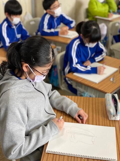 モデルをおいて何やらデッサンのよう・・・担任の先生も一緒になって描いていました。