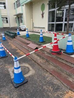 老朽化で痛んでいた昇降口階段の修理が行われています。