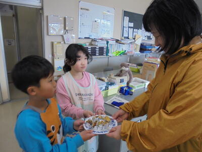 「職員室の先生方で食べてください」と2年生からスイートポテトをいただきました。