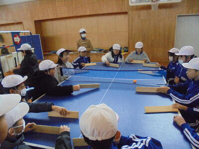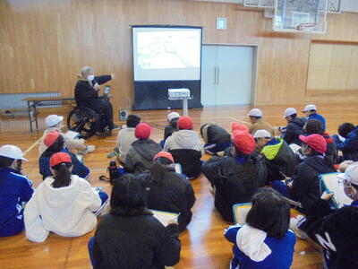 今日は、福島県障がい者スポーツ協会の方が来校し、パラスポーツ体験をしました。