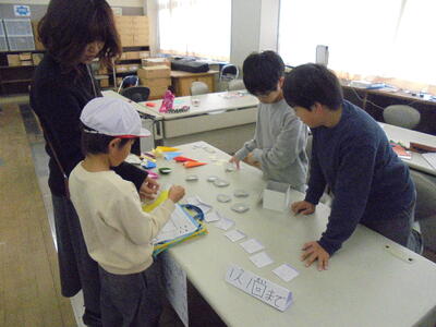 先日の1組に続いて、3組が1年生を招待してお祭りを開催しました。